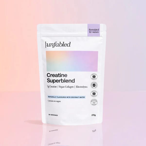 This is the scientific foundation that brands like Unfabled are building on. Their Creatine Superblend delivers 5g of creatine per serving alongside a vegan collagen builder and an electrolyte complex, explicitly positioned for women who want steady energy, clearer thinking, and whole-body strength. The formulation is a stack designed around the specific gaps in the female creatine research.